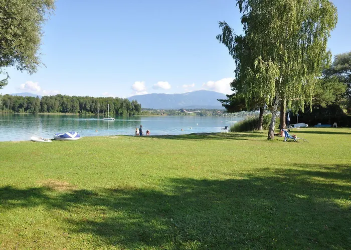 Si te alojas en el apartamento, podrás relajarse en la playa privada situada a 650 metros. Puedes llegar al Der Zitrusgarten en 10 minutos en coche, mientras que el aeropuerto Klagenfurt está a 50 km.